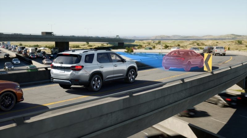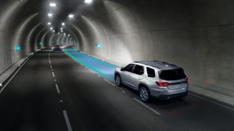 The 2026 Pilot comes standard with the Honda Sensing® suite of driver-assist technologies, including Collision Mitigation Braking System™, Lane Keeping Assist System, Road Departure Mitigation, and Adaptive Cruise Control.