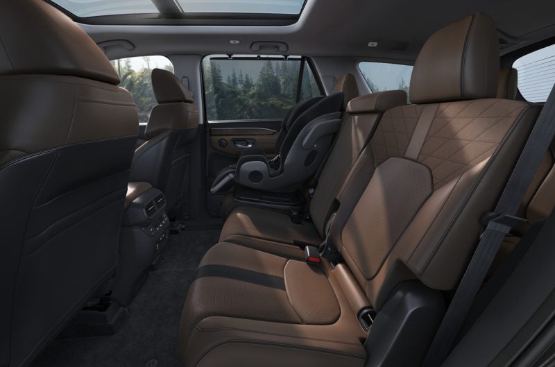 Inside, the spacious three-row cabin offers premium materials, thoughtful storage, and flexible cargo space to support busy family life.